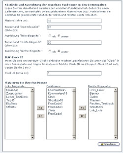 Diese zentrale Funktion beim Gestalten des Blogs mit dem man alle Funktionen in den Seitenspalten frei plazieren kann, hat eine komplette Überarbeitung erfahren. Statt der Ersatzcodes kann man nun ganz einfach aus dem Pool aller Funktionen wählen und diese per Mausklicks an die gewünschte Position klicken. In den Selektorfeldern können dann natürlich keine HTML oder PHP Codes eingebunden werden, deshalb haben wir drei Freecode Bereiche geschaffen, die von Euch befüllt werden können und dann in die Seitenspalten eingebunden werden können.